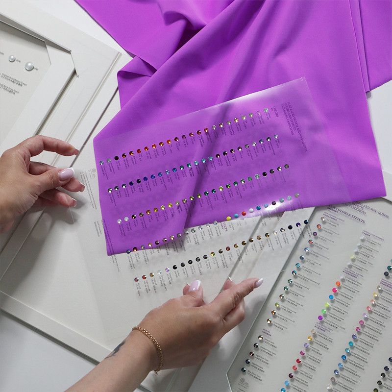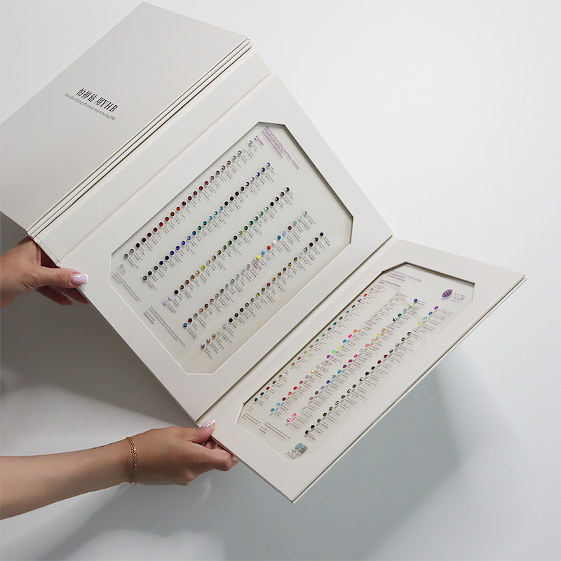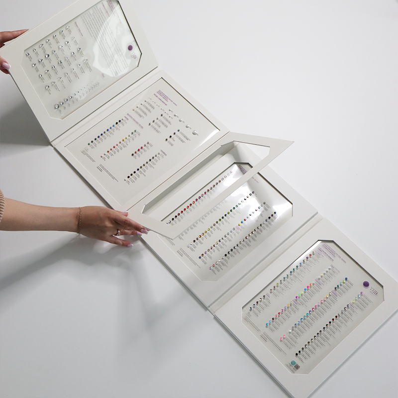 Работа с блеском требует точности. Один и тот же аксессуар в цвете Siam или Ruby может восприниматься совершенно по-разному в зависимости от подтона, материала основы и даже освещения. Именно поэтому карта цветов страз — не просто удобный инструмент, а необходимая часть процесса выбора. Без неё дизайнер словно рисует вслепую: он может угадать, но не увидеть настоящего результата. Палитра помогает раскрыть замысел, точно определить, какой эффект будет производить изделие при движении, под светом прожектора или в естественном освещении.