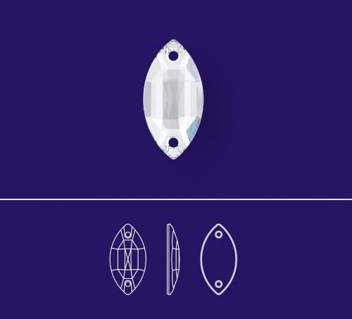 Пришивные кристаллы Stellux арт. A320 Navette. Каждый страз снабжен отверстиями для пришивания, что делает возможным использовать эти кристаллы для декорирования любой одежды, а также сумок, портьер и прочих вещей, на которые их можно пришить. Их используют как самостоятельные элементы, так и в сочетании с бисером, и другими пришивными кристаллами.