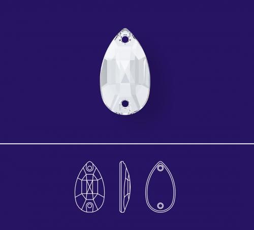 Пришивные кристаллы Stellux арт. A330 Drop. Каждый страз снабжен отверстиями для пришивания, что делает возможным использовать эти кристаллы для декорирования любой одежды, а также сумок, портьер и прочих вещей, на которые их можно пришить. Их используют как самостоятельные элементы, так и в сочетании с бисером, и другими пришивными кристаллами.