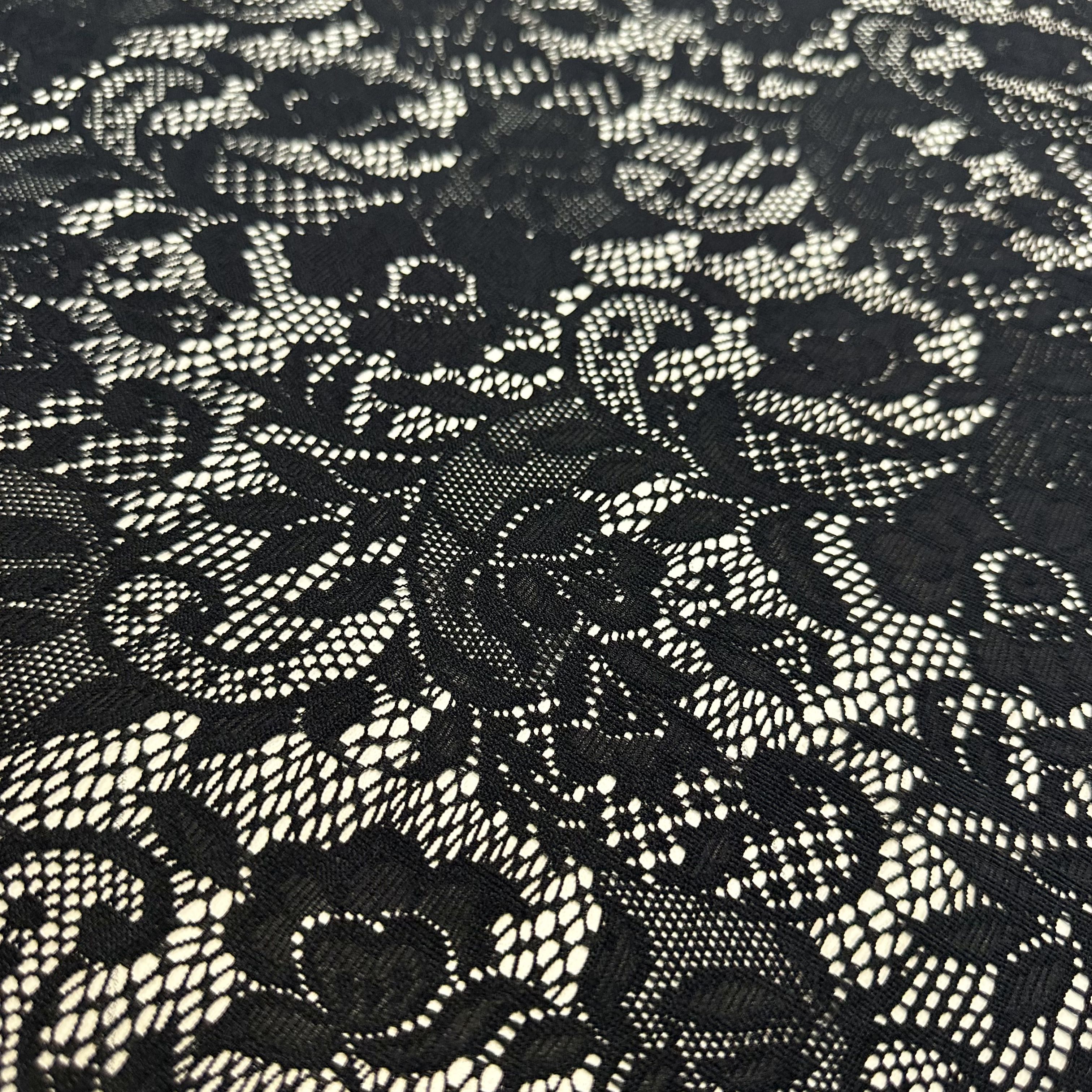 Ещё одно важное качество — способность сочетаться. Этот материал дружит со многими текстурами: атласом, шифоном, трикотажем, шелком. Он может стать акцентом на юбке или рукаве, подкладкой под сетку или основой для аппликаций. Гипюр-стрейч не спорит, он подчёркивает. Он умеет быть скромным, но при этом не остаётся незамеченным. А ещё — он практичен. Несмотря на изящество, ткань демонстрирует достойную плотность, не капризна в уходе и держит форму даже после множества стирок, сохраняя выразительность рисунка.