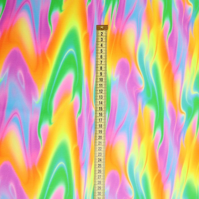 Эта ткань создана для тех, кто знает цену движению. Высокая плотность полотна, эластичность во всех направлениях, мягкость и упругая структура — всё это делает трикотажное полотно на основе полиэстера и эластана настоящей находкой для пошива купальников, костюмов, леггинсов, а иногда и цельных сценических нарядов. Благодаря сочетанию плотной посадки и ярких принтов ткань не просвечивает, даже в растянутом виде, оставаясь визуально целостной. Это особенно важно при работе с крупными узорами, клеткой, полосками и абстрактными мотивами, где требуется чёткая геометрия. Кроме того, Friedman отлично справляется с изгибами и объёмами: материал не деформируется, не даёт пузырей, не искажает пропорции изделия.