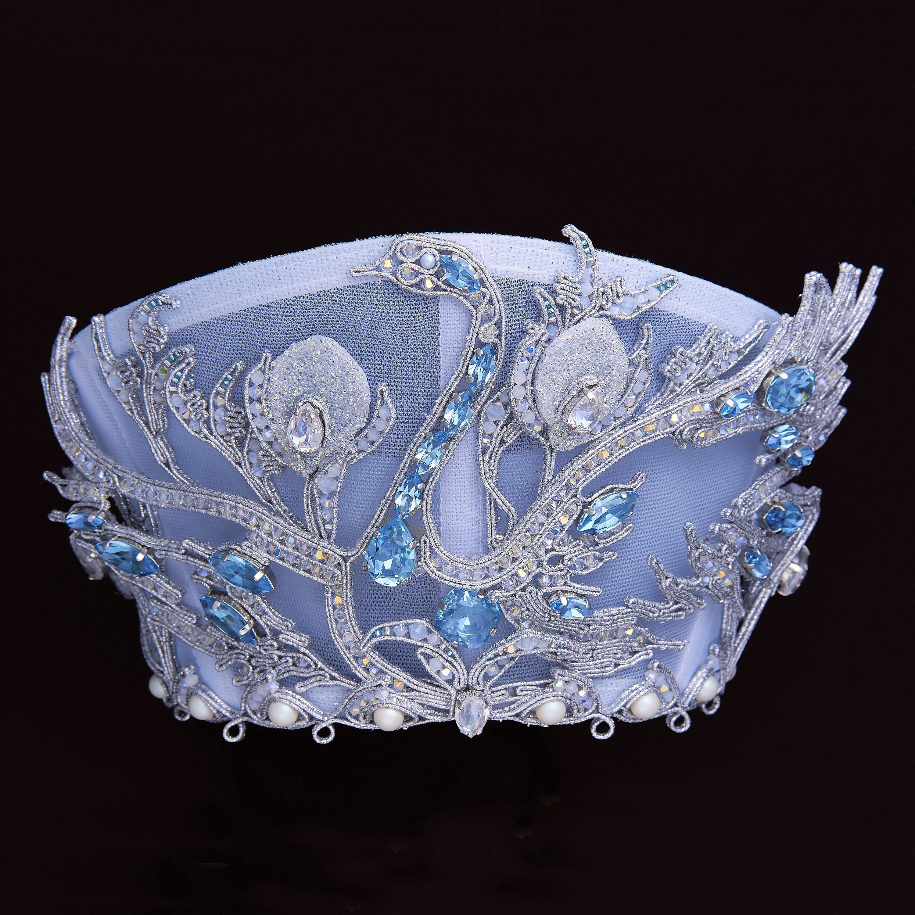 вшиты бусины, кристаллы и жемчужины. А затем уже закреплена на кокошнике,