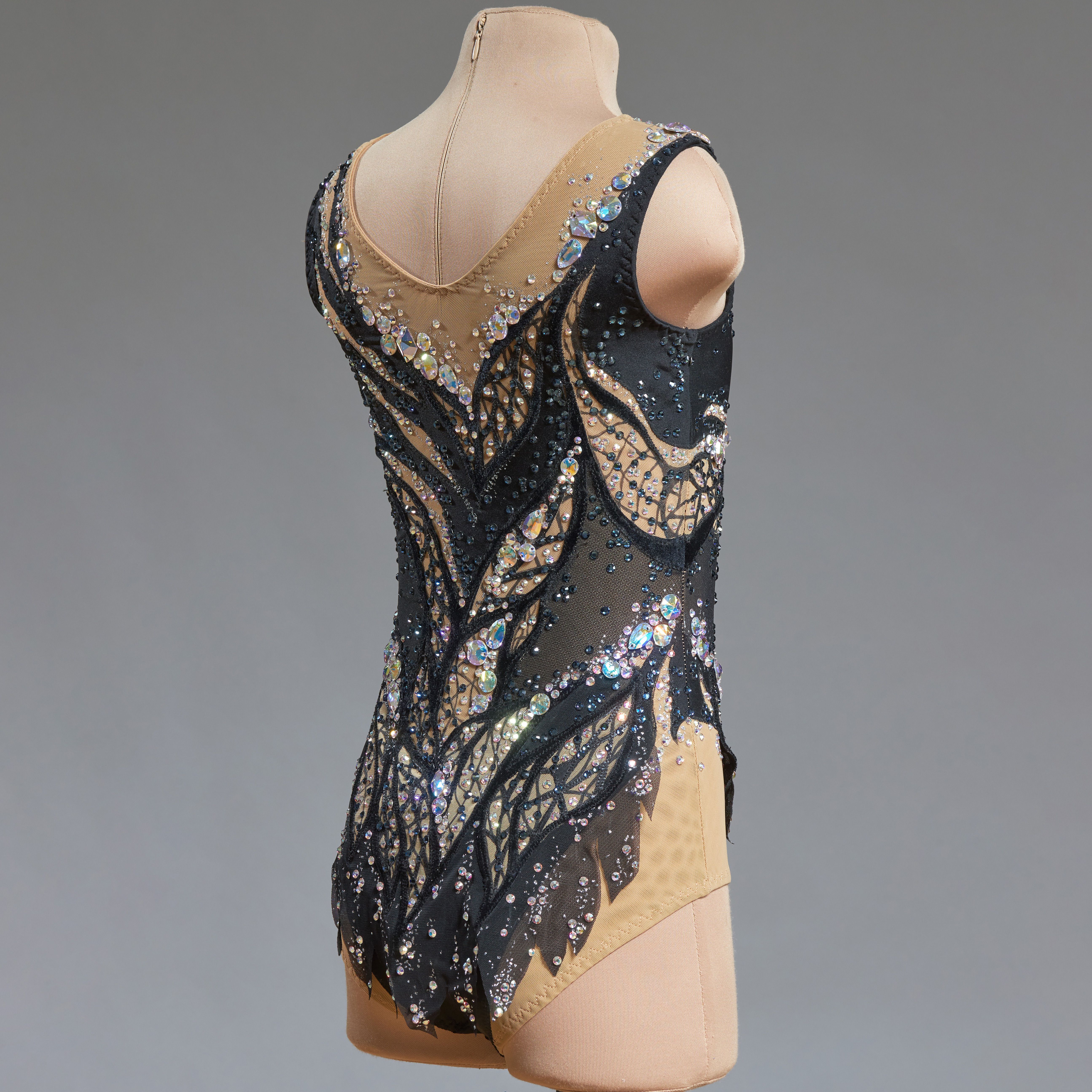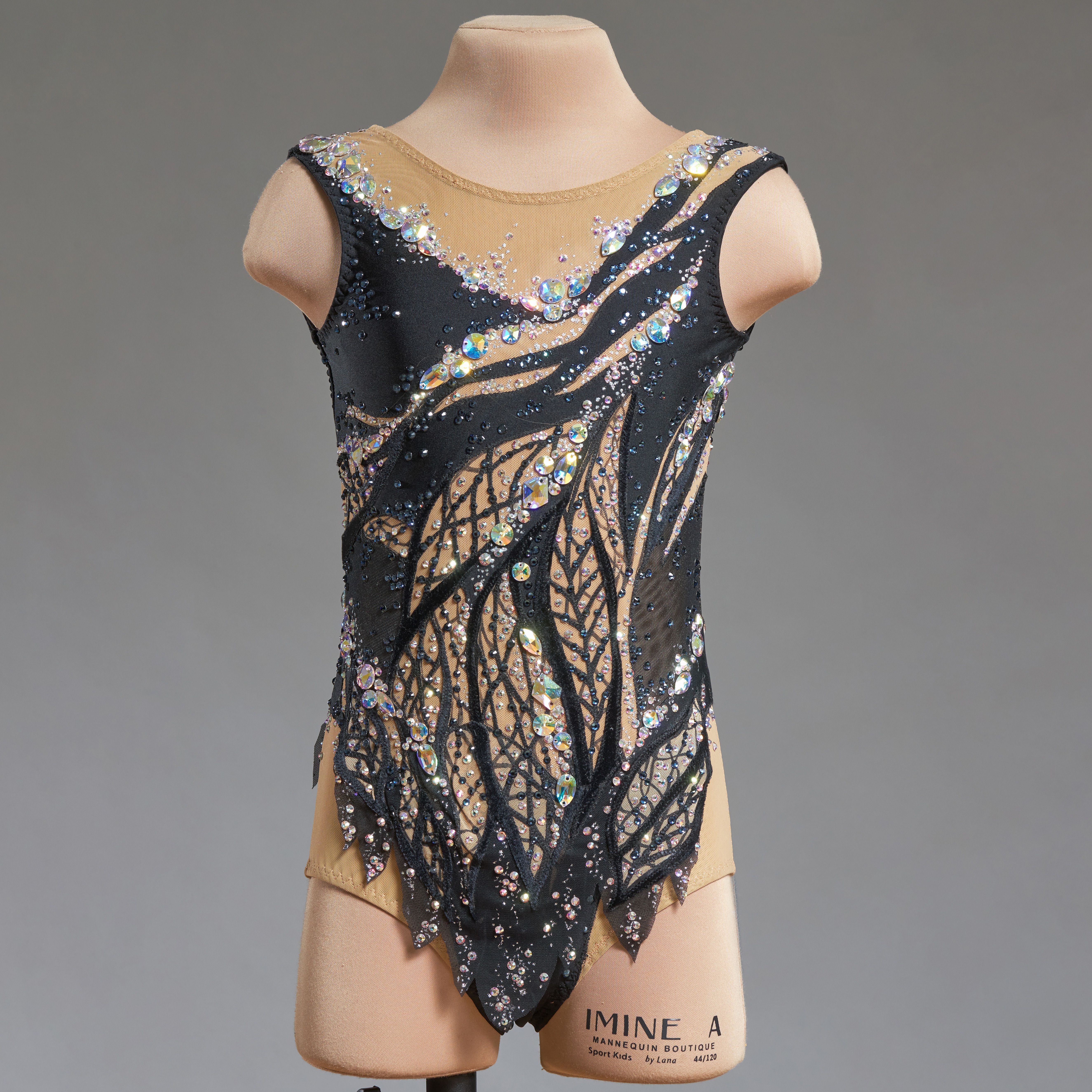 Всё верно, не влюбиться не возможно. Крошечные кристаллики, будто капли росы, разбежались по поверхности купальника. Растительный декор из листьев в центре композиции. Декор струится, подчёркивая фигуру и завершая яркий шикарный образ.