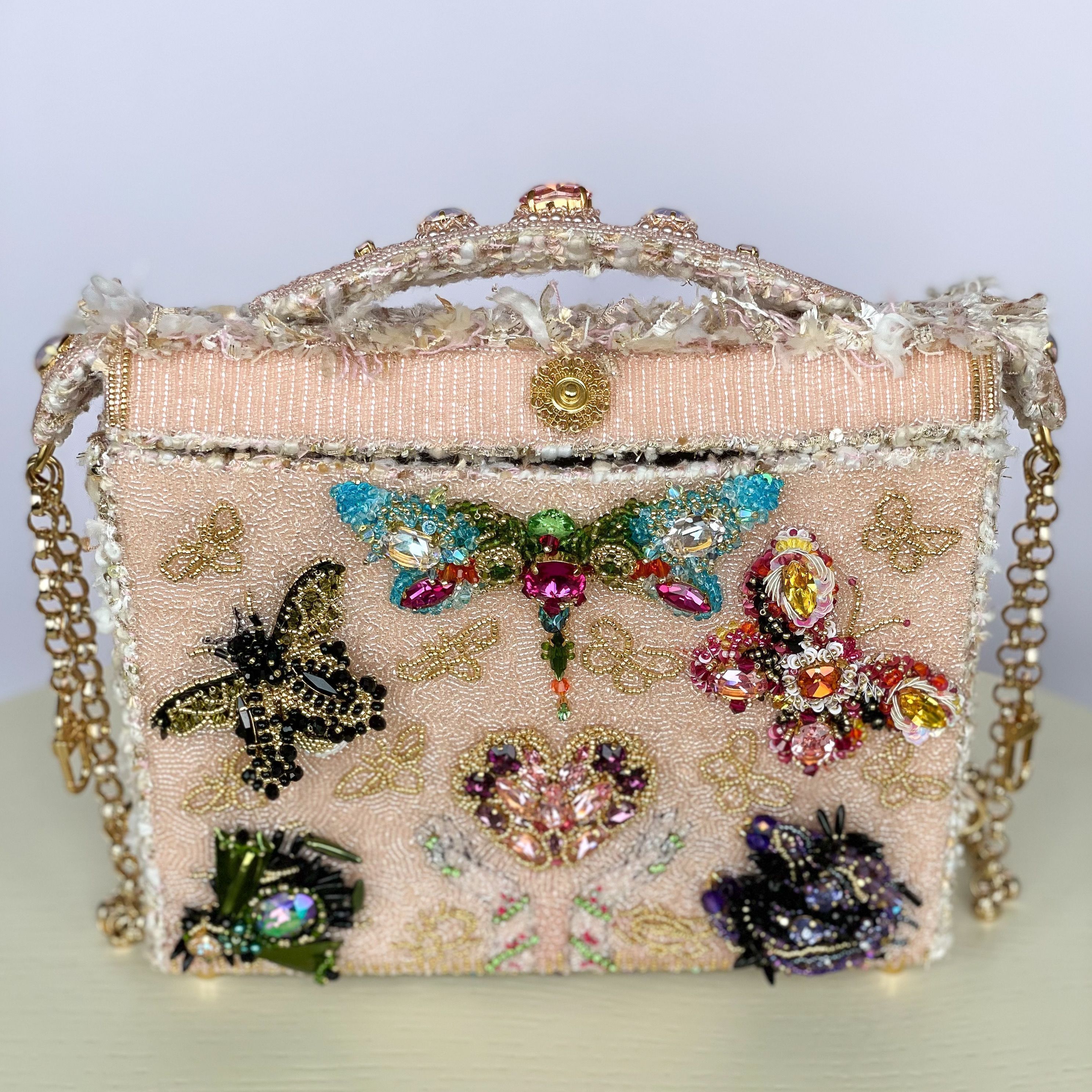Как рассматривая новые кристаллы и бусины, мы фантазировали новые эскизы украшений и сумочек, как вдохновлялись и у нас порхали бабочки в животе. Как эти кристаллы перевоплощались в цветы, насекомых, птиц - во все, что мы хотели. Как мы любили их и продолжаем любить. Вот о чем моя работа. Надеюсь, вы это тоже почувствуете.