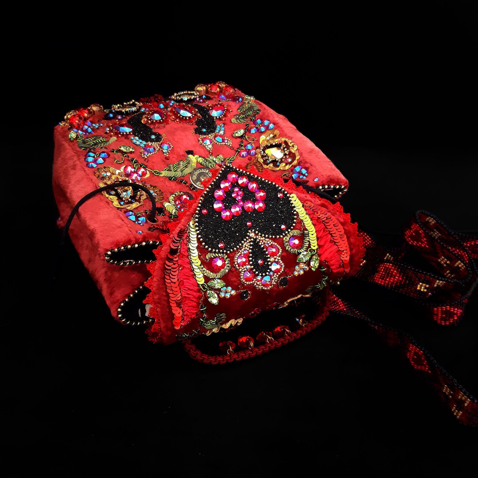 Орнамент на лямках рюкзака так же подчиняется основной идее и содержит как растительные узоры так и небольшие сердечки.