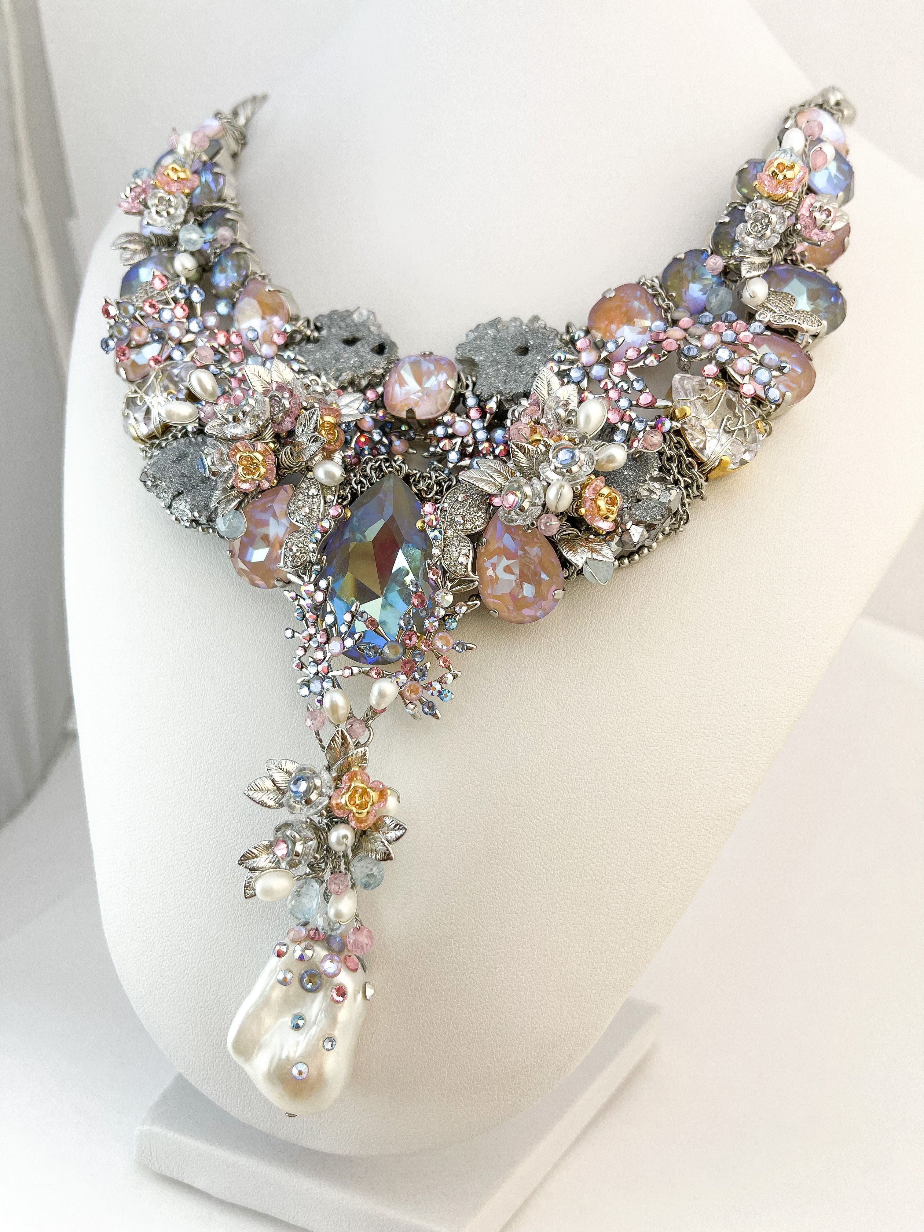 Как скола воплощает мужество и силу. Как порхающая бабочка показывает нам всю трепетность течения времени, и цветы благоухают самыми вкусными красками. Топазы, словно капли водопада, стекают по лепесткам цветов. Мельчайшие кристаллы небрежно рассыпаны как будто брызги воды. Так хочется освободиться от оков ежедневной рутины и напиться чистой водой, и надышаться свежим ветром. Вот оно совершенство мира в естественном воплощении природы.