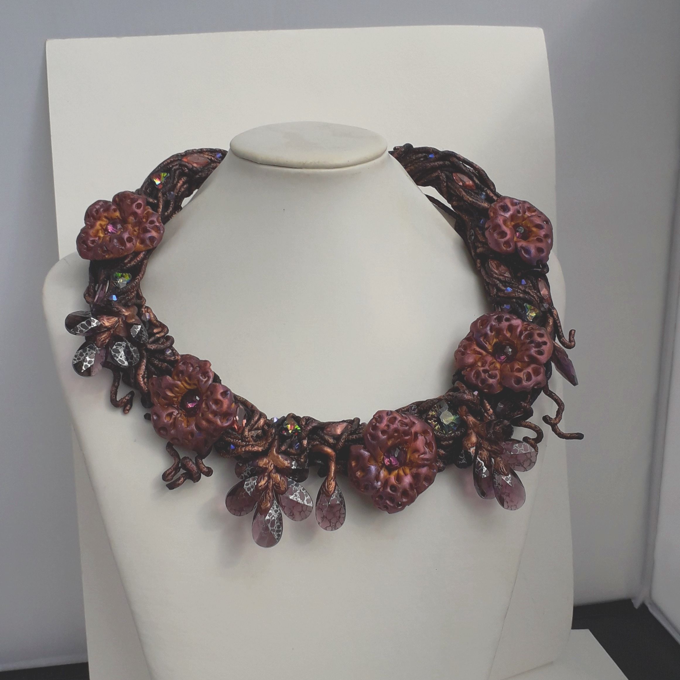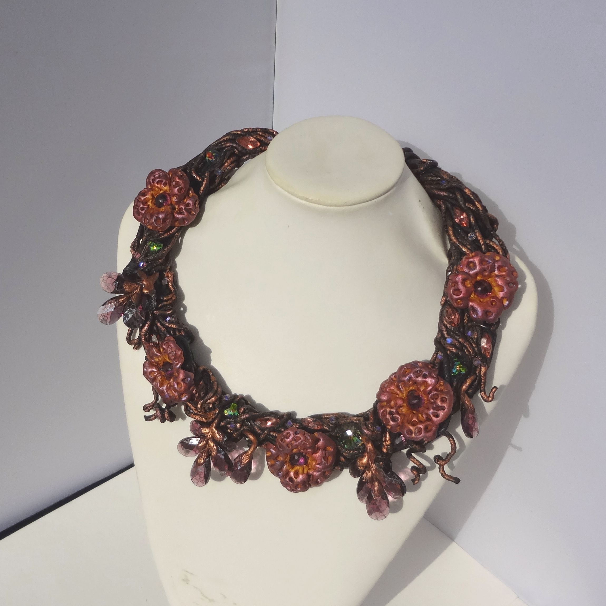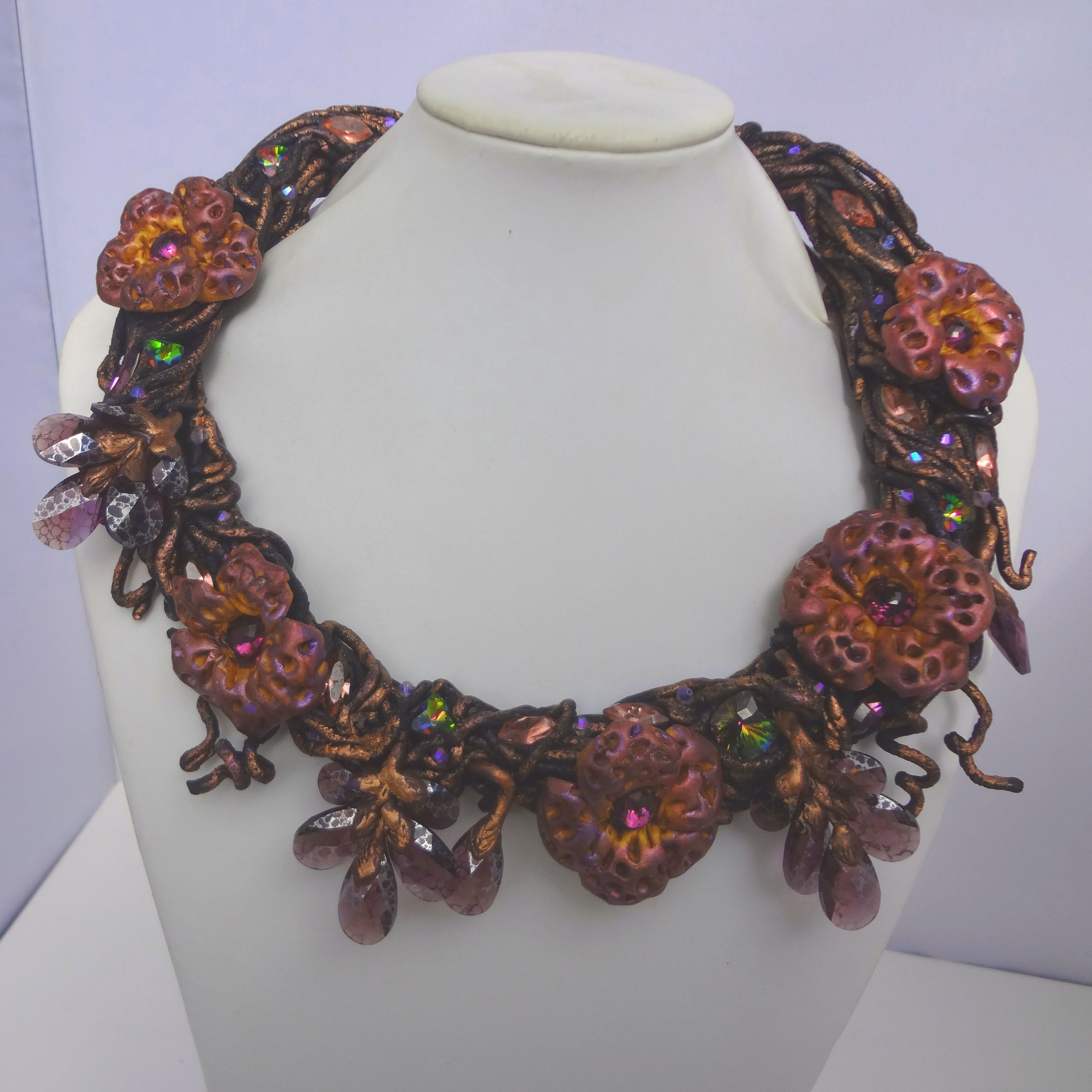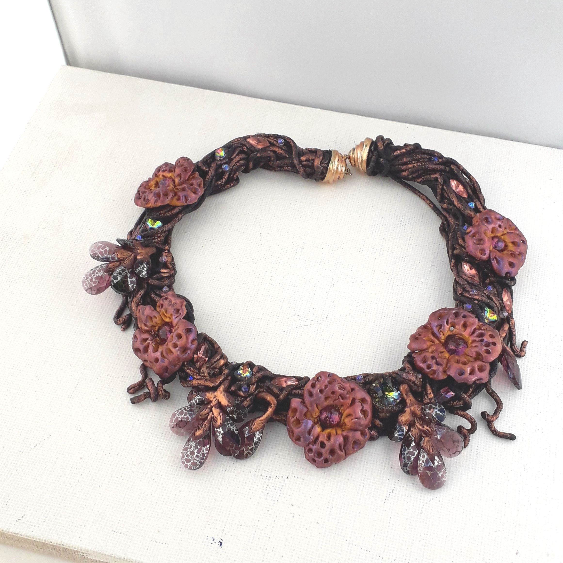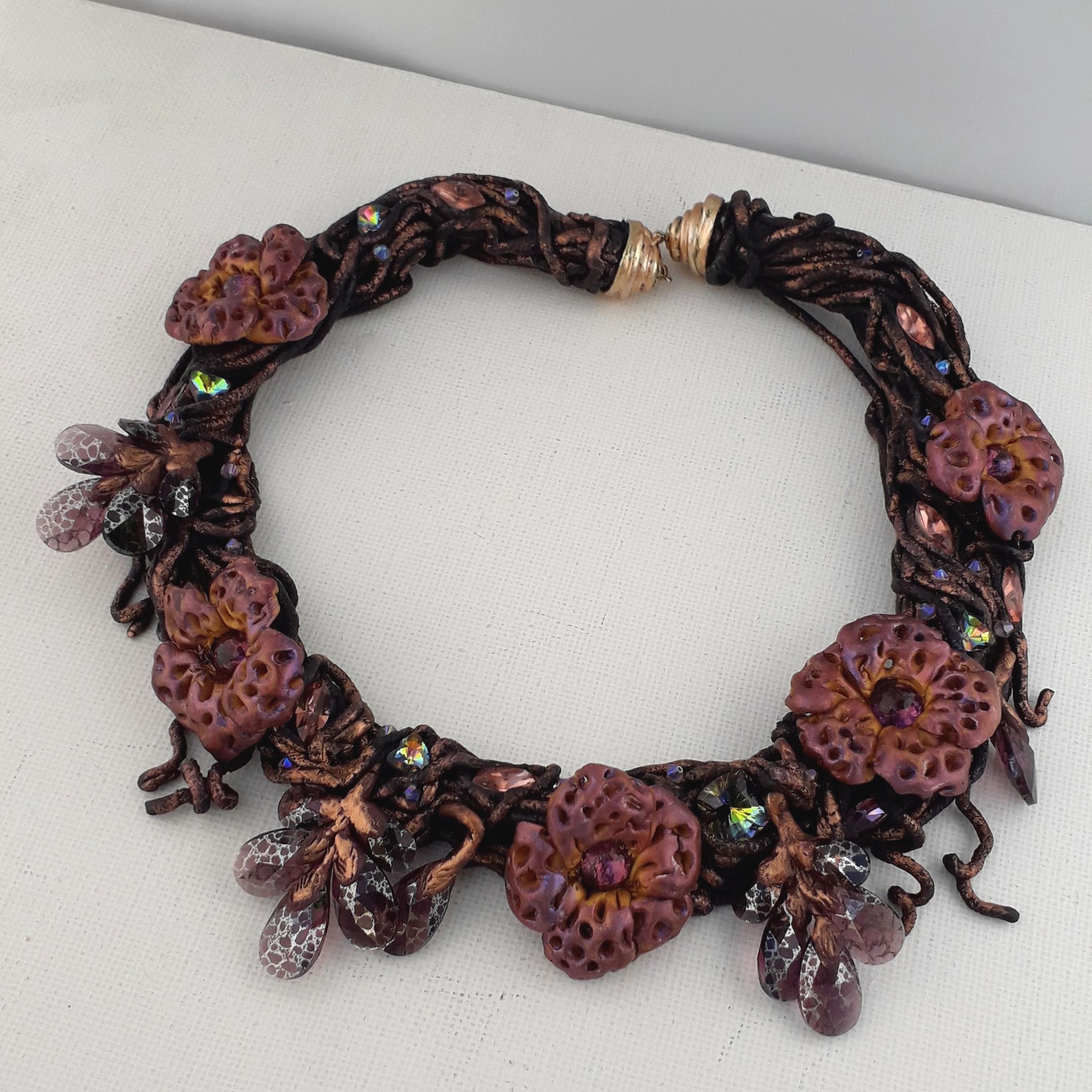 Я очень люблю делать украшения из серии "Небывалая флора". А еще я очень люблю кристаллы. И если в настоящем ботаническом царстве кристаллы встречаются, прямо скажем, нечасто, то как раз в случае небывалой флоры именно блеск и роскошь кристаллов помогают воплотить торжество "ветви, полной цветов и листьев...»