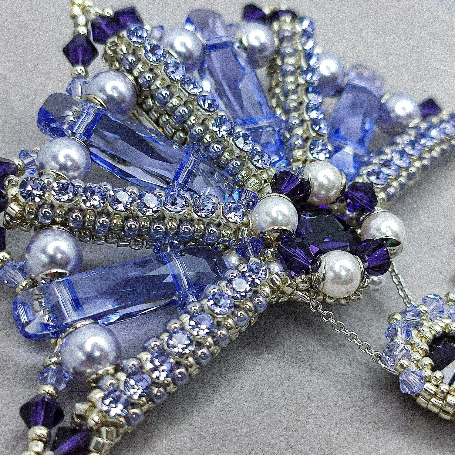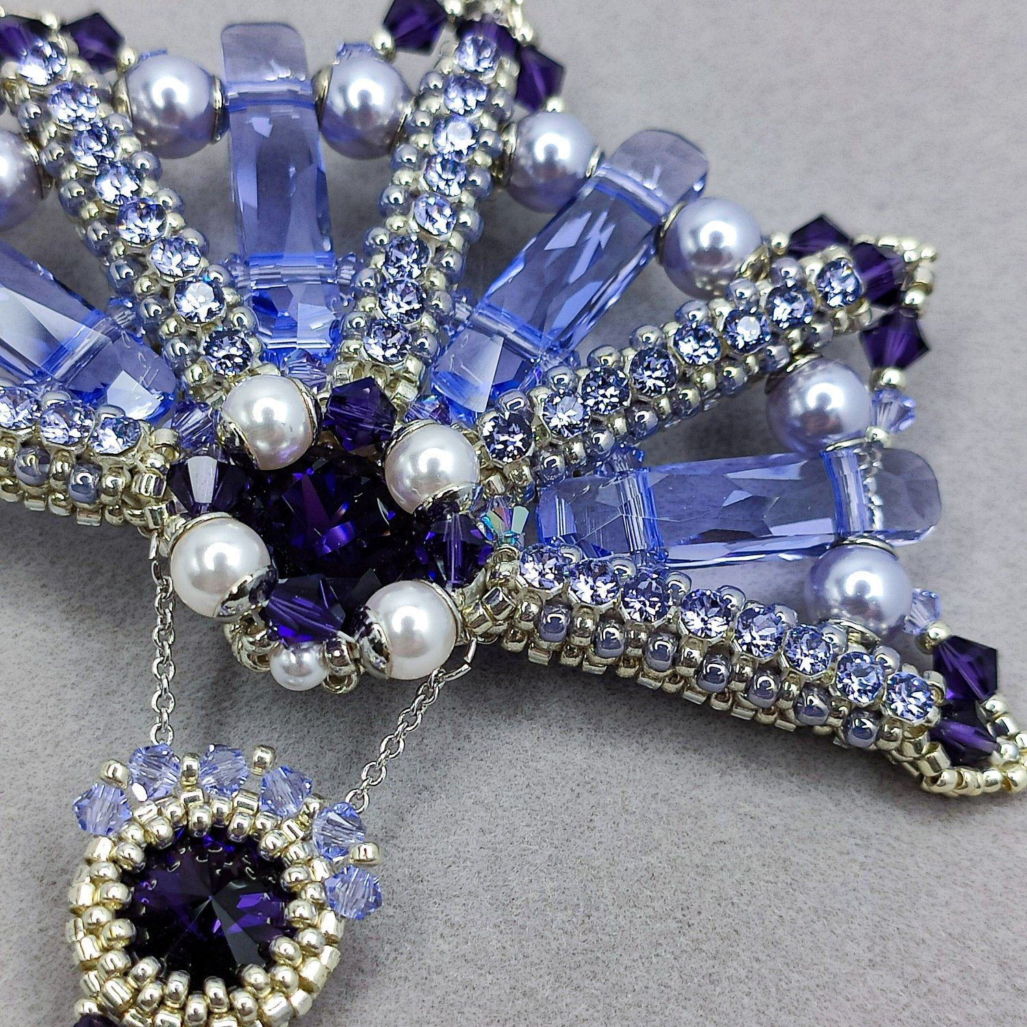 Брошь полность выполнена в технике ювелирного плетения. Благодаря прозрачности и веерному расположению бусин Column (two holes) брошь приломляет большое количество света и сохраняет деликатное сияние при любом ракурсе. Танец световых бликов на гранях создаёт особую магию...