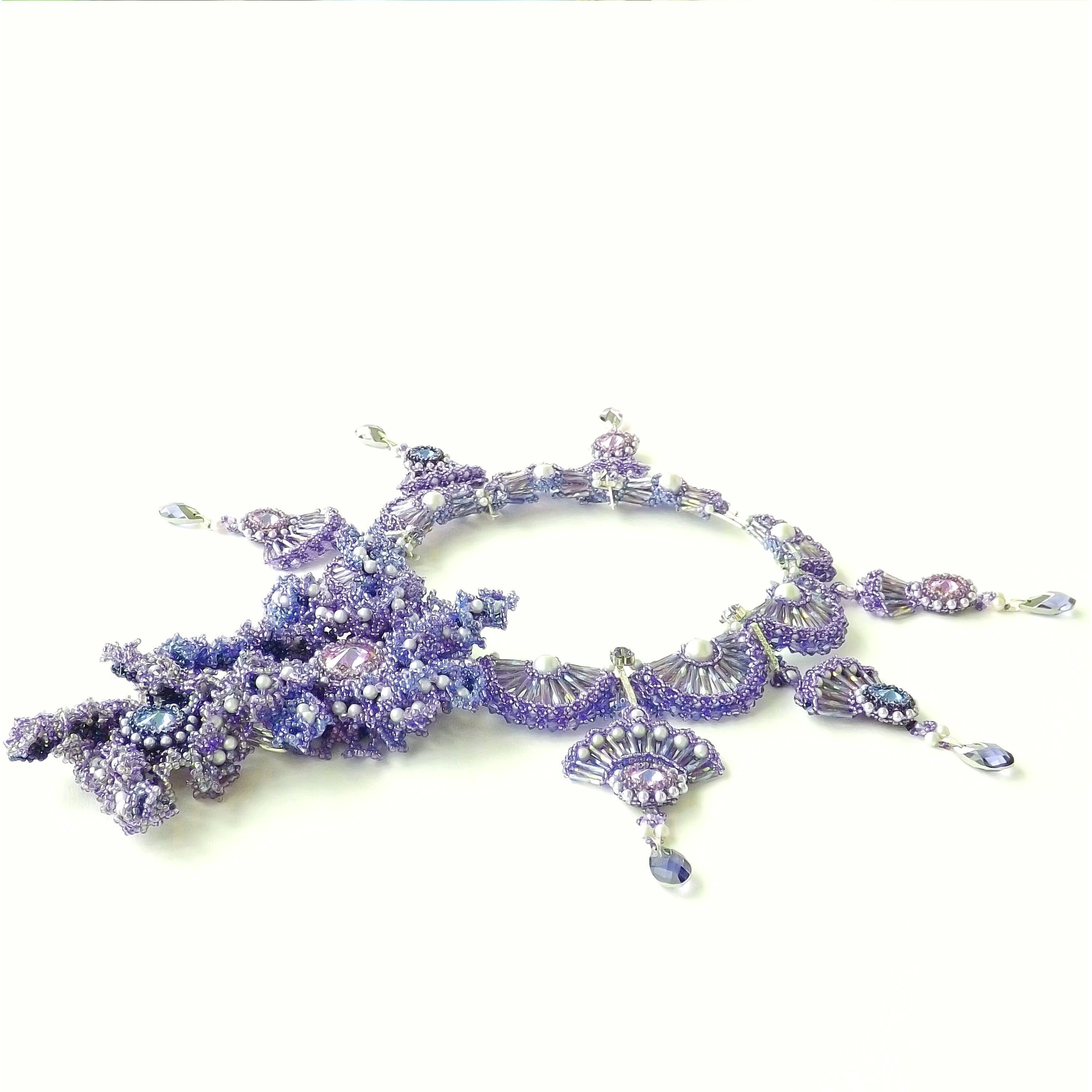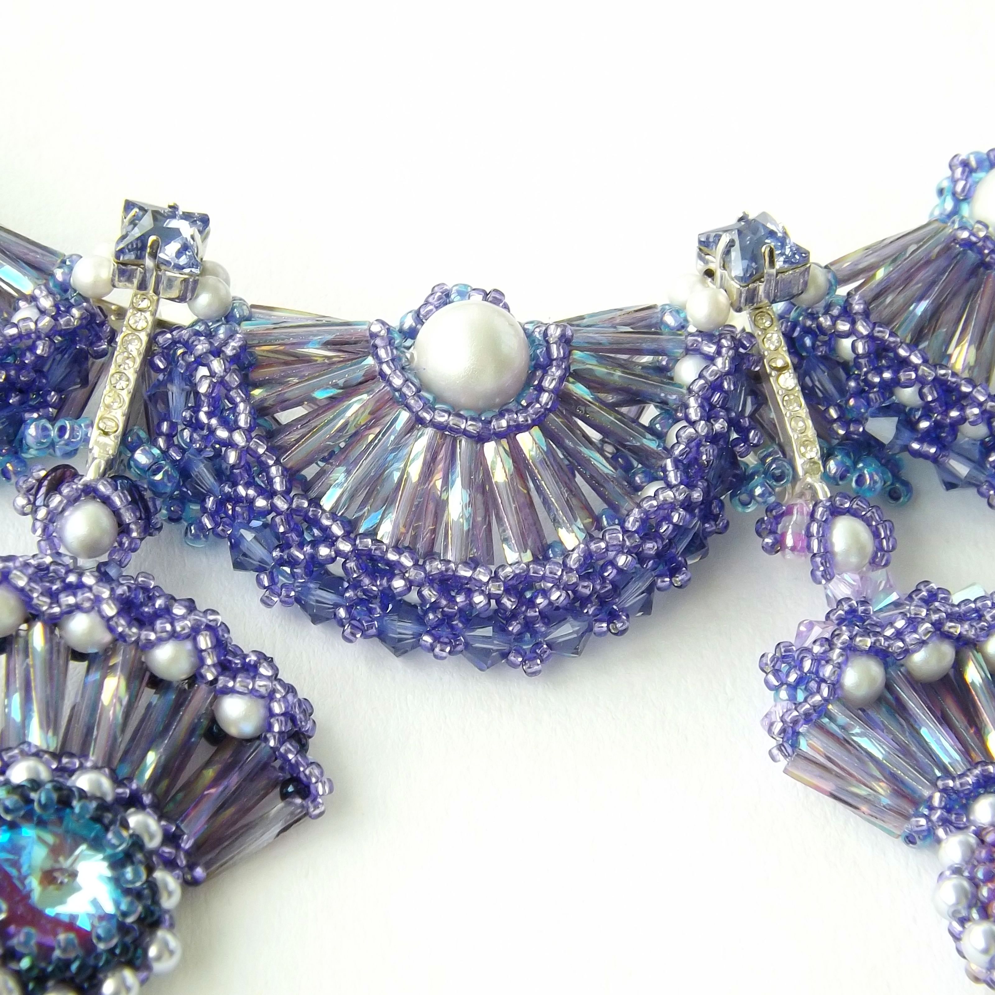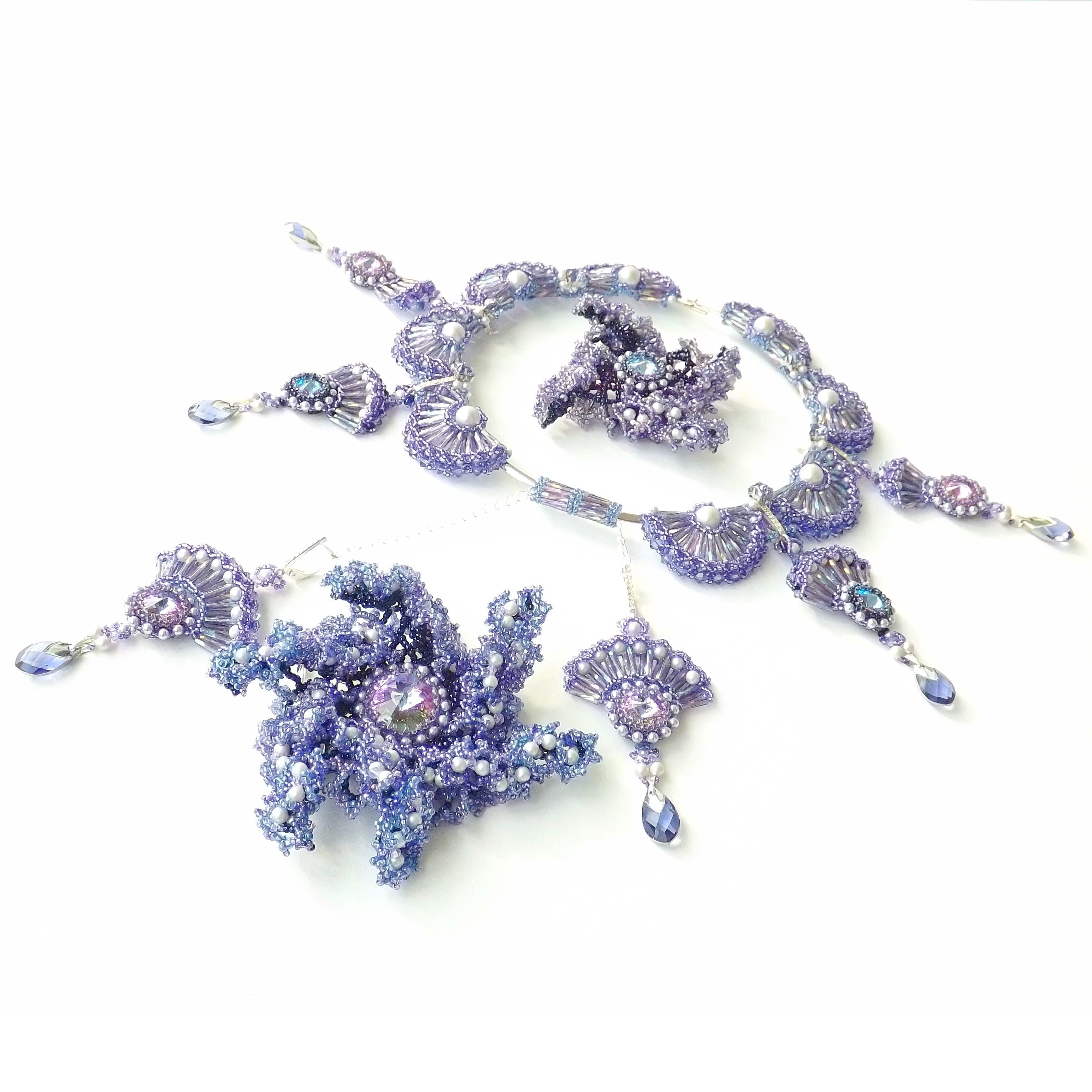 Парюра состоит из основы-воротничка (снимается с гривны), двух брошей и трех пар серег-подвесок, что позволяет носить элементы - украшения в различных сочетаниях и независимо друг от друга.