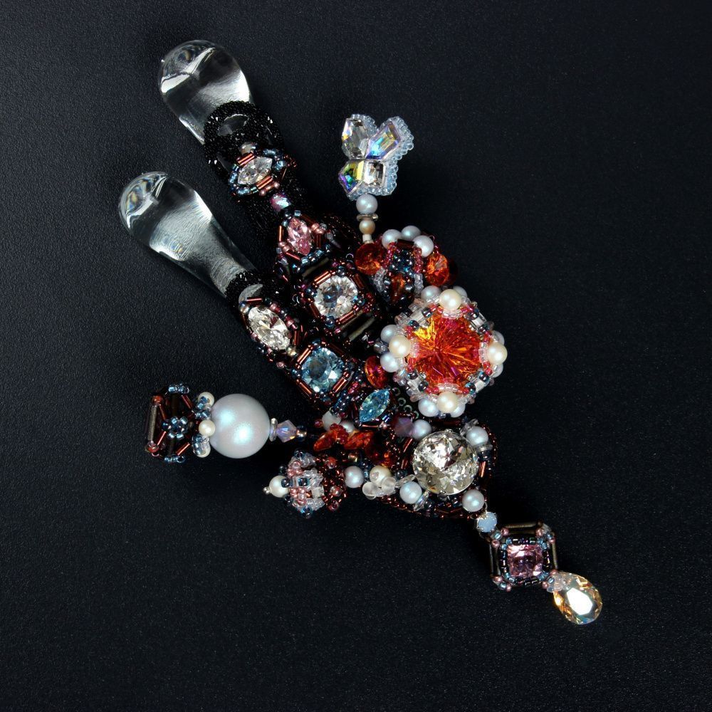 Дома отмытые стекляшки оказались хрустальными подвесками с люстры времен СССР и были в идеальном состоянии. Они и этот случай вдохновили меня на создание броши «Тайный сад».