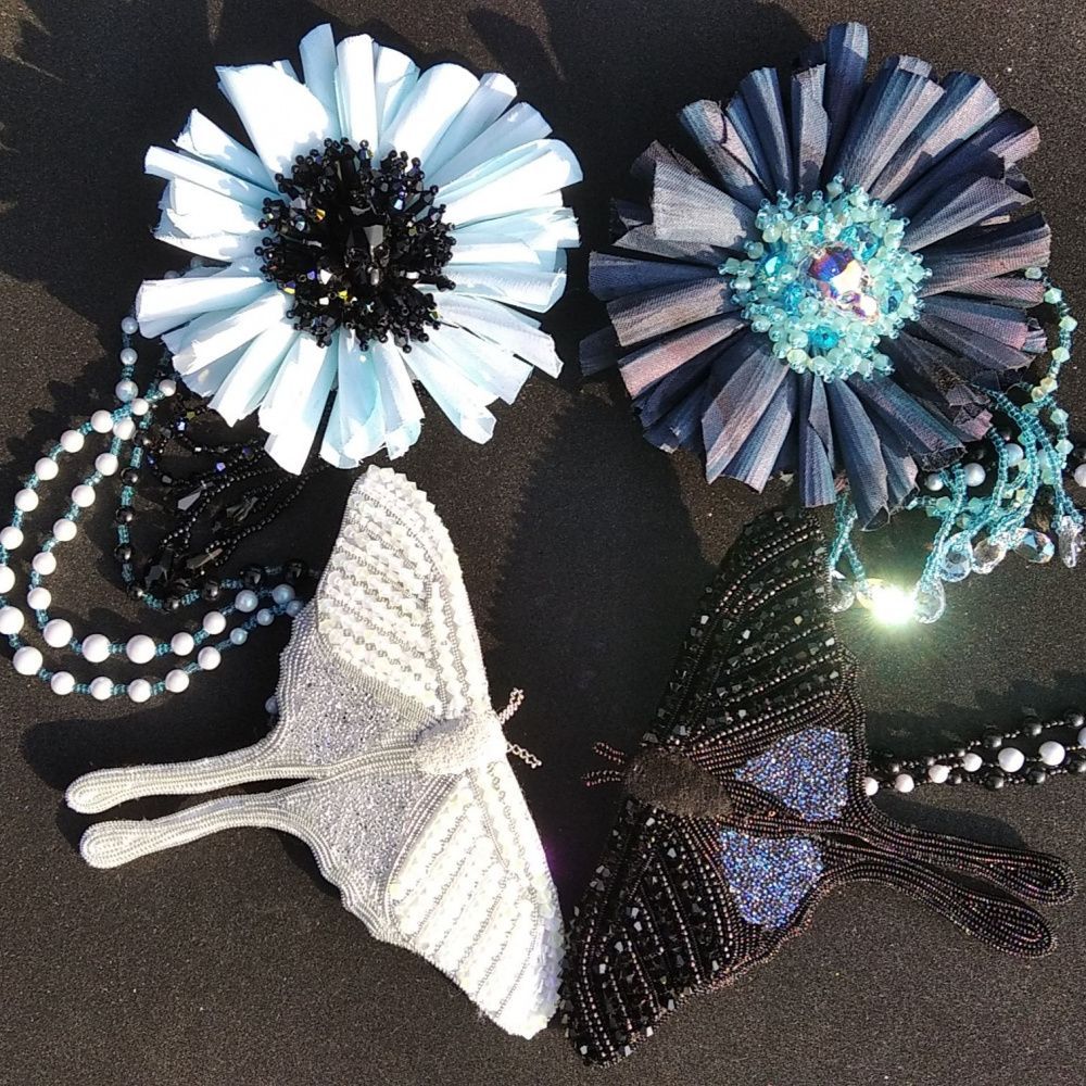 Броши можно носить по отдельности, можно пересобирать пары, а самые рисковые и стильные могут надеть обе двойные броши разом.