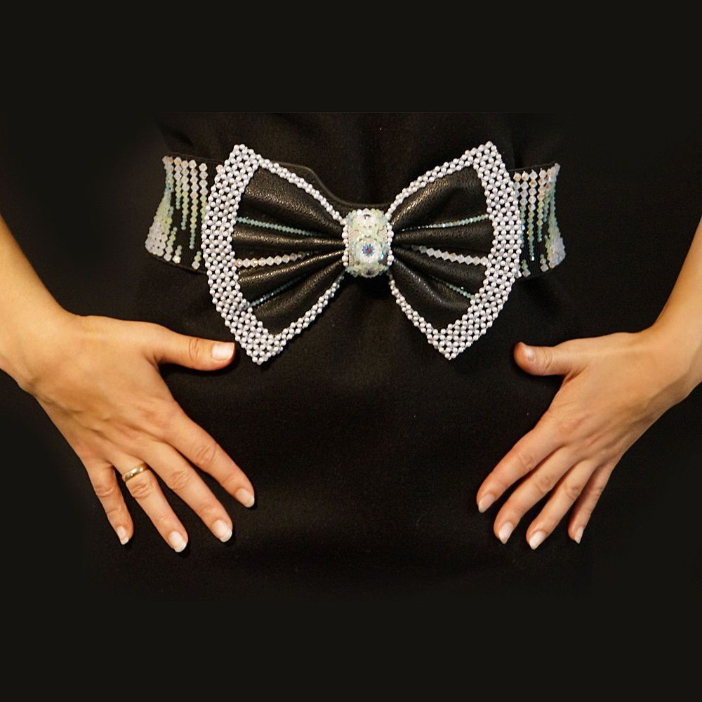 Мы привыкли, что днём ярко сияет солнце. Его золотые лучи дарят жизнь и радость. Если посмотреть, как оно садится в воду, можно заметить, что линия горизонта за ним сжимается, обнажая плавные изгибы земли. Таким же образом пояс сжимает нашу талию, подчёркивая, в свою очередь, уже изгибы нашего тела. И тогда, сидя на берегу моря, мне пришла в голову идея декорировать пояс, чтобы продемонстрировать новые грани сияния.