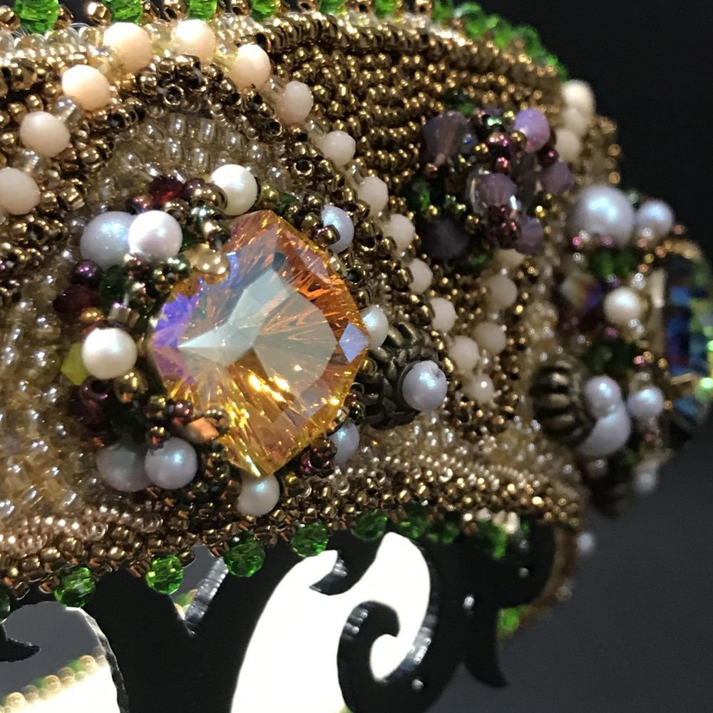 Своей работой я хотела отдать дань традициям своих предков и выразить восхищение непревзойденным кристаллам и жемчугу компании Swarovski.