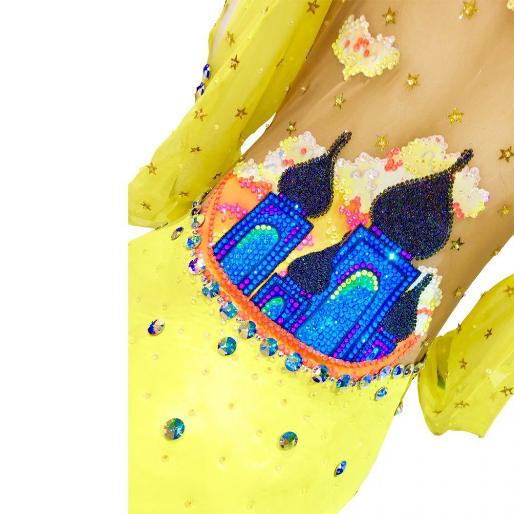 Я впервые участвую в конкурсе Сваровски, и хочется верить, что двигаюсь в верном направлении. Для меня тема Сияние всегда связана с востоком. Ведь там все блестит, горит, женщины носят большое количество дорогих украшений, купола светятся Золотом… И отовсюду веет богатством, Вот и для работы восток навеял свое… Ведь в этом году так хочется яркости! И вот она, яркость! Вот она сказочность, магия и загадка! Купальник выполнен в ярких тонах, по купальнику рассыпаны пайетки в виде звезд. Сам стиль купальника также восточный, легкие широкие рукава, изящные манжеты. Юбка в стиле Алладина…. Ну и конечно конкурсные стразы помогли с воплощением яркости и дополнили образ купальника. Новые грани сияния для меня заключаются именно в этой яркости. Они придают нотки оптимизма в этот сложный для всех нас год. Будьте яркими! И мир вам улыбнется обязательно!