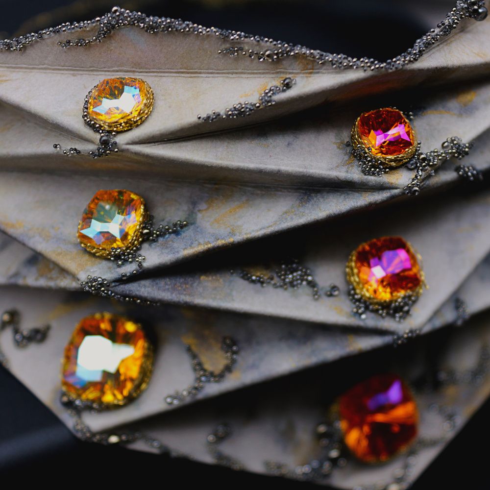 In my work, I have combined elements of the ancient art of Origami and a modern interpretation of the choker shape. The strict lines of the necklace and its clear edges, complemented by the impeccable SWAROVSKI crystals, perfectly reflect the theme of the contest “NEW FACETS OF SHINE”.