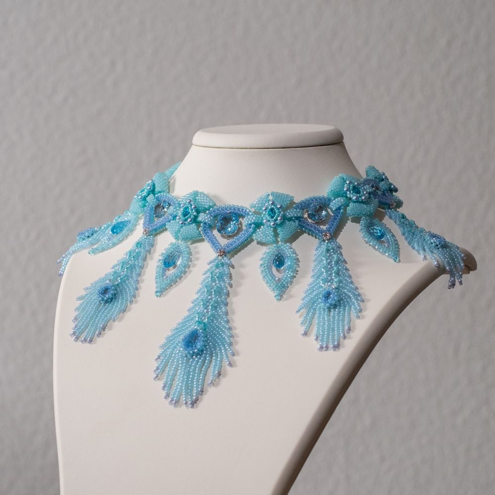 В своей работе мне хотелось показать красоту цвета Aquamarine Ignite, его легкость и воздушность. Его восхитительное прозрачное сияние, словно пронизанное насквозь светом — как дождь, который идет в ясную погоду, не замечая палящего солнца.