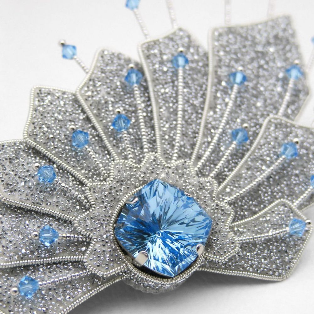 Форма украшения родилась из самого кристалла Mystic Square, именно его уникальная огранка подсказала, как этот "big bang" ("большой бабах") должен быть выражен в физической форме. В работе среди прочей продукции Swarovski использованы кристаллы цвета аквамарин, они – словно кусочек чистого безоблачного неба, как глоток свежего воздуха, как вера в то, что всё обязательно будет хорошо. И новое будущее непременно откроет нам огромный мир поразительных возможностей.