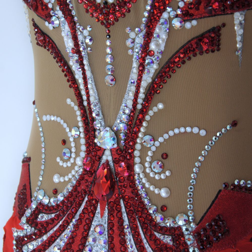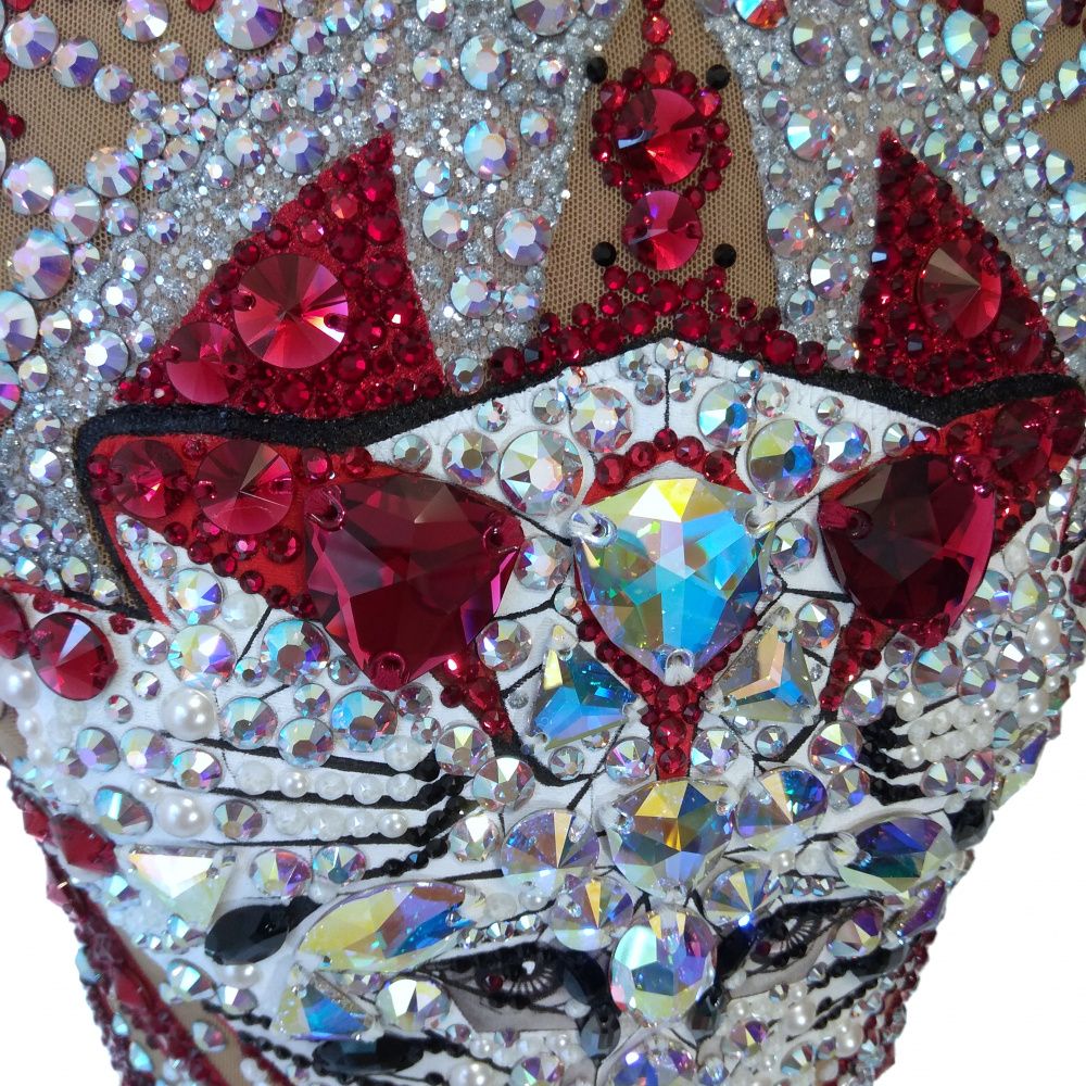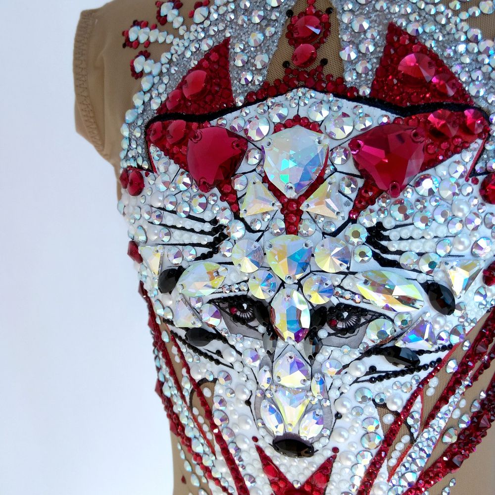 Купальник выполнен по мотивам японской мифологии. Центральным объектом является морда-маска белоснежной хрустальной лисы в кимоно. Считается, что мех девятихвостой лисы кицунэ серебристый, белый.
