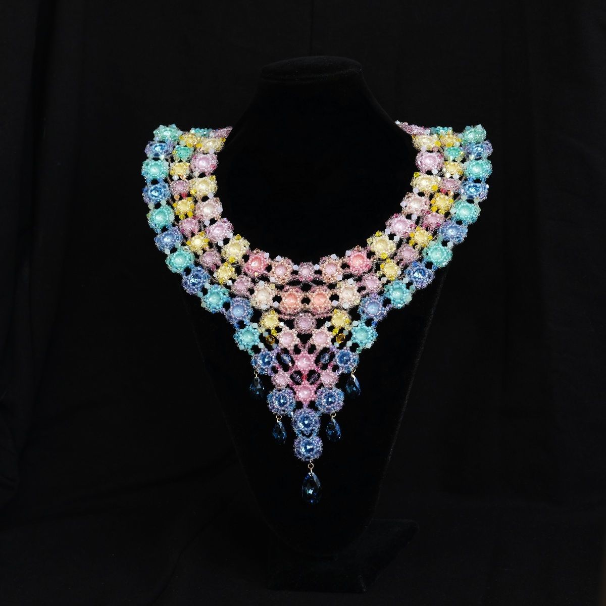 В конкурсной работе применено множество маленьких кристаллов и бусин нежнейших цветов, что позволило отразить красочные переливы утренней Авроры.