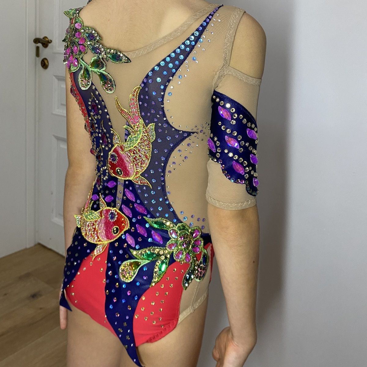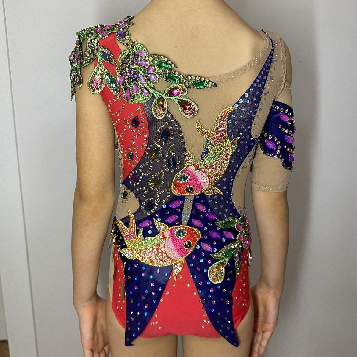 В разработке дизайна купальника я вдохновлялась японской культурой, их любовью к балансу и сдержанности. Моря и океаны самые мало изученные мест на земле. Моя работа отображает зазеркалье красного моря в котором обитают карпы кони, растут причудливые цветы и бушует морская стихия отражающаяся в кристаллах.