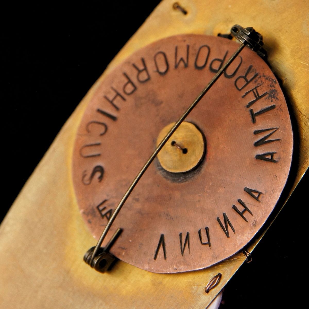 Крупная брошь в виде антропоморфной личины. За основу взяты личины, найденные в Казымском кладе в Сибири в 2014 г. Сокровища клада могут относиться как к периоду Кулайской культуры (быть современниками скифов и сарматов), так и являться материальными свидетельствами существования ранее неизвестного народа на территории Сибири.