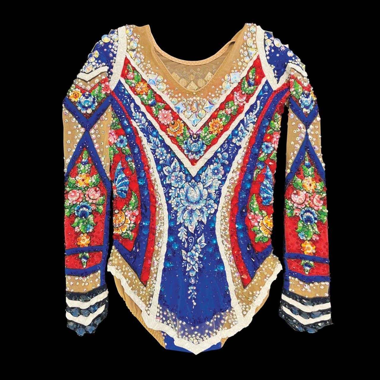 Свет прожектора выделяет хрупкую фигурку девушки. Её наряд, купальник с ярким орнаментом и расписными элементами. Сила Гжель-девицы – в наследии предков, в культуре и самобытности русского народа. Сила в красоте, трудолюбии, таланте, искусстве, мудрости предков, верности традициям. Гжель-девица стоит на страже традиций России.