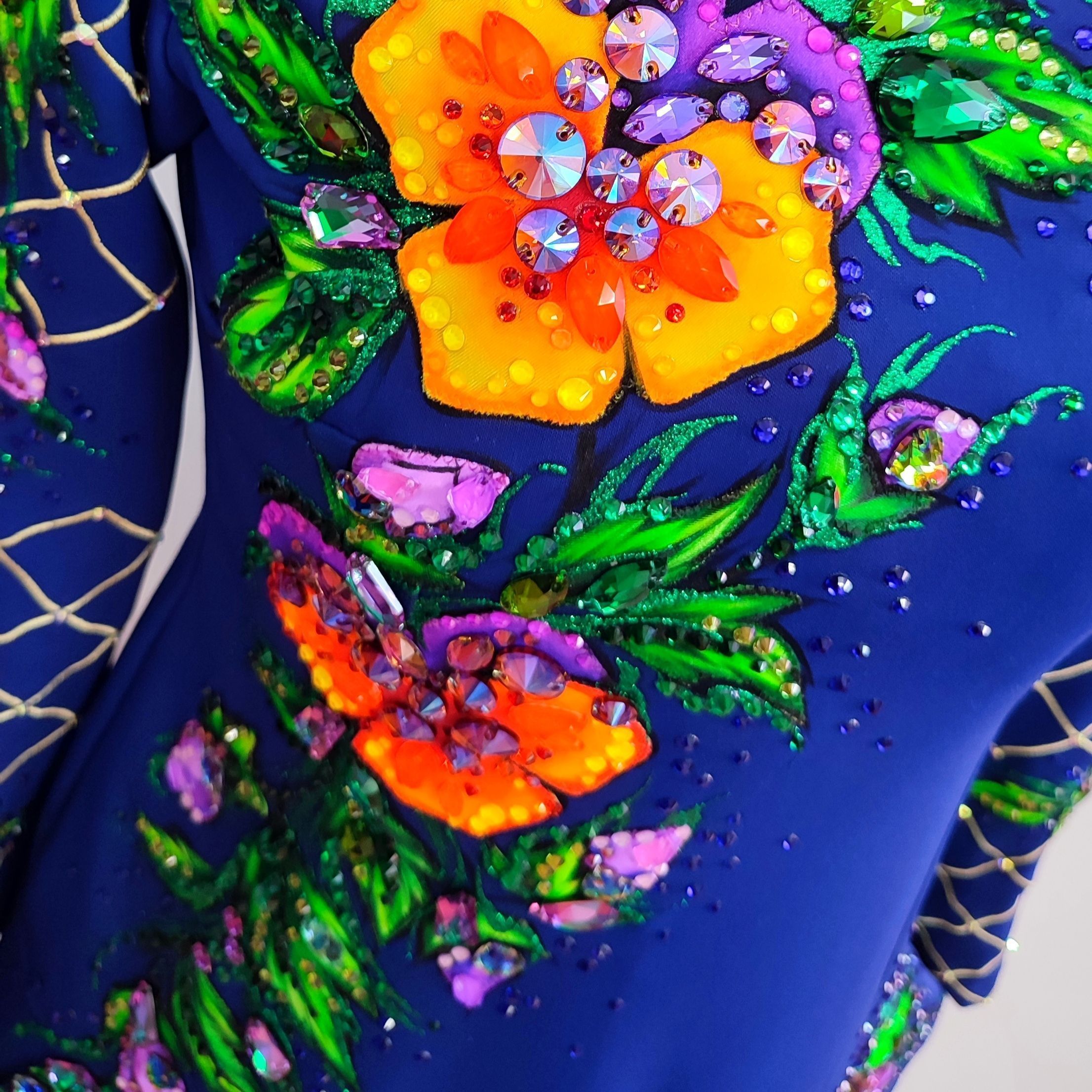 Но в наше время исполнитель ирландского танца вправе вложить в свой костюм частичку своей души и заявить о себе, и наша героиня Анна воспользовалась этим, реализовав с помощью нашей мастерской костюм "Анютины глазки'.