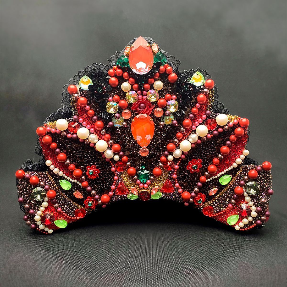 Что первое приходит в голову, вспоминая традиции - ну бесспорно Кокошник. Это же старинный русский головной убор. Его берегли для торжественных случаев, а конкурс, это же и есть торжество.