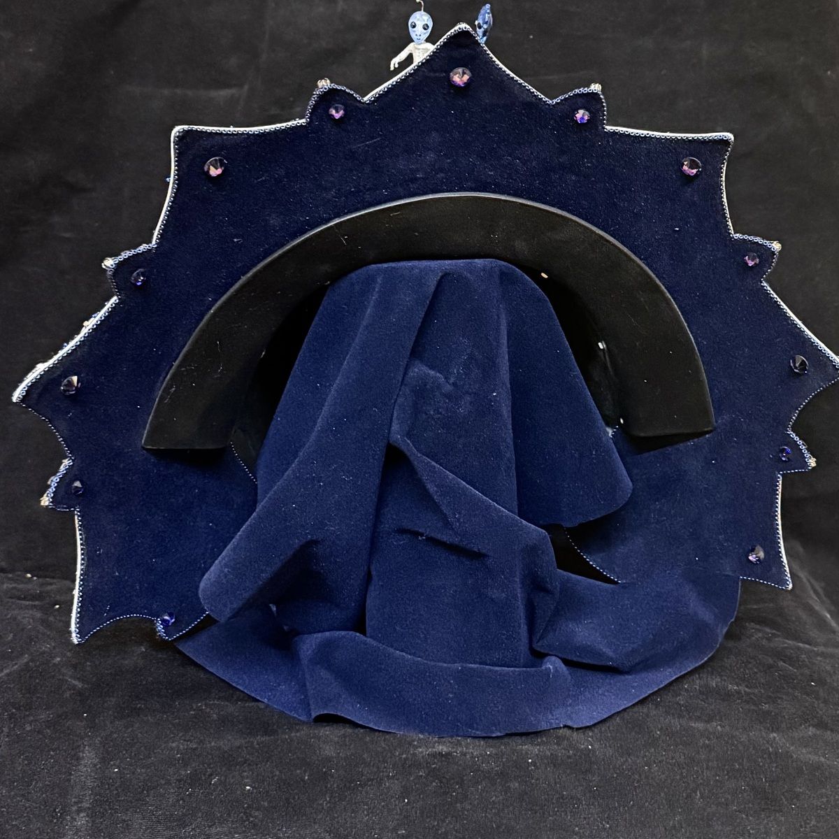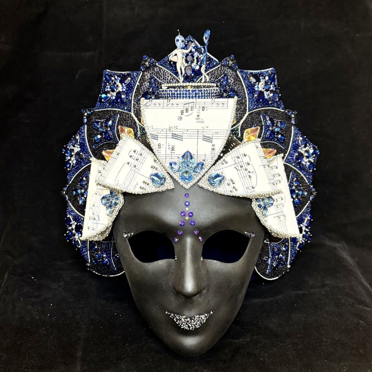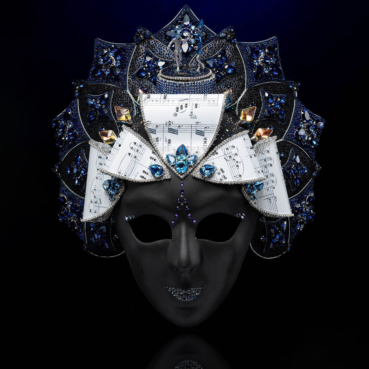 В маске использован музыкальный механизм, при заводе проигрывается фрагмент вальса «На прекрасном голубом Дунае», а фигурки инопланетян вращаются.