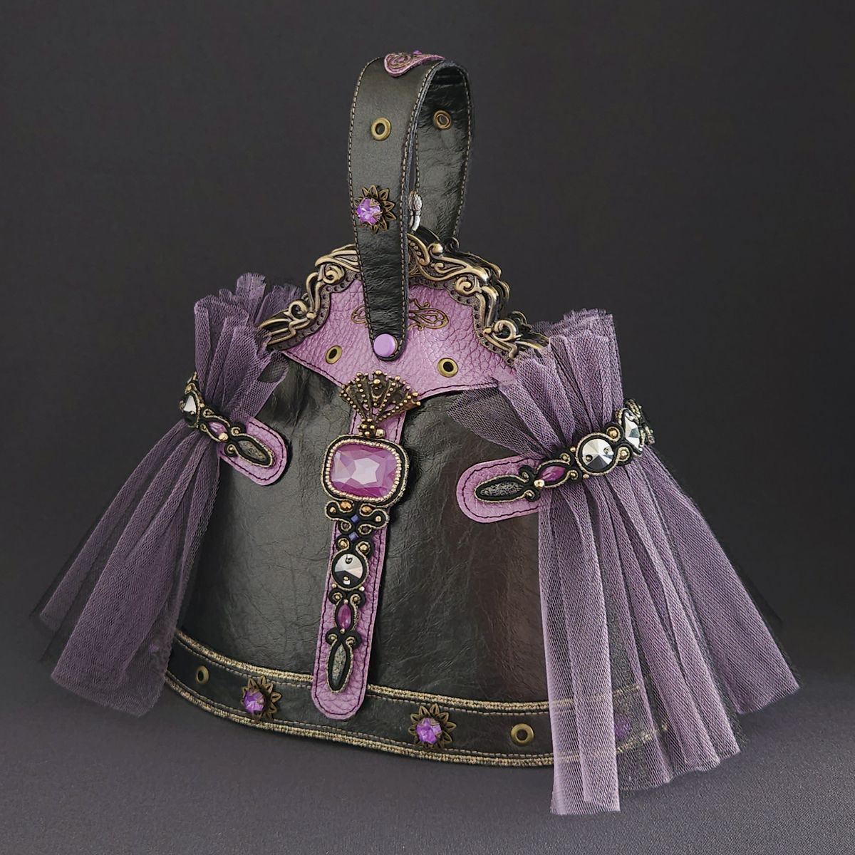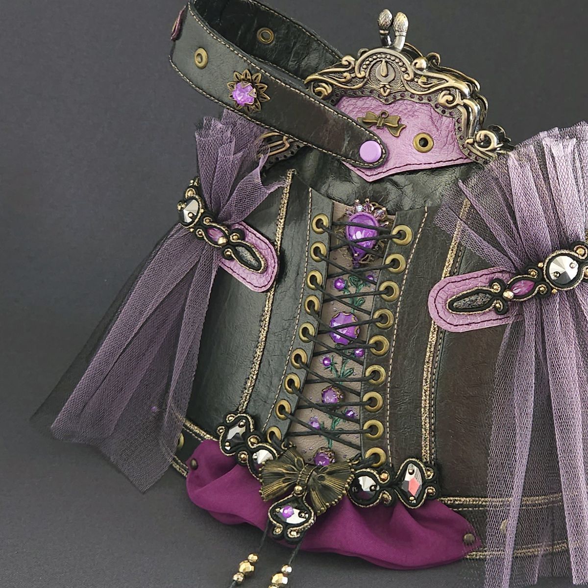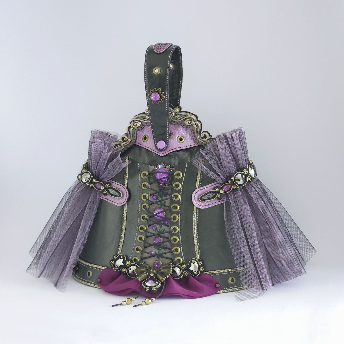 В очертаниях видится силуэт  бального платья  с тугим корсетом. Но сквозь линии шнуровки  на спине можно увидеть яркую и смелую неоновую татуировку вдоль позвоночника.
